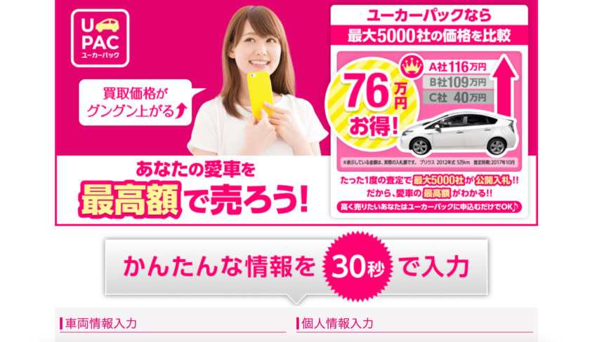 ユーカーパックとは、車査定がWebから無料でできるサービスです。